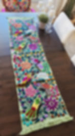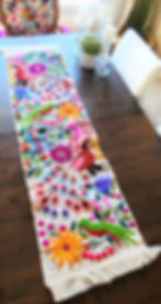 Tab le runner with Flowers machine embroidered from Guatemala.