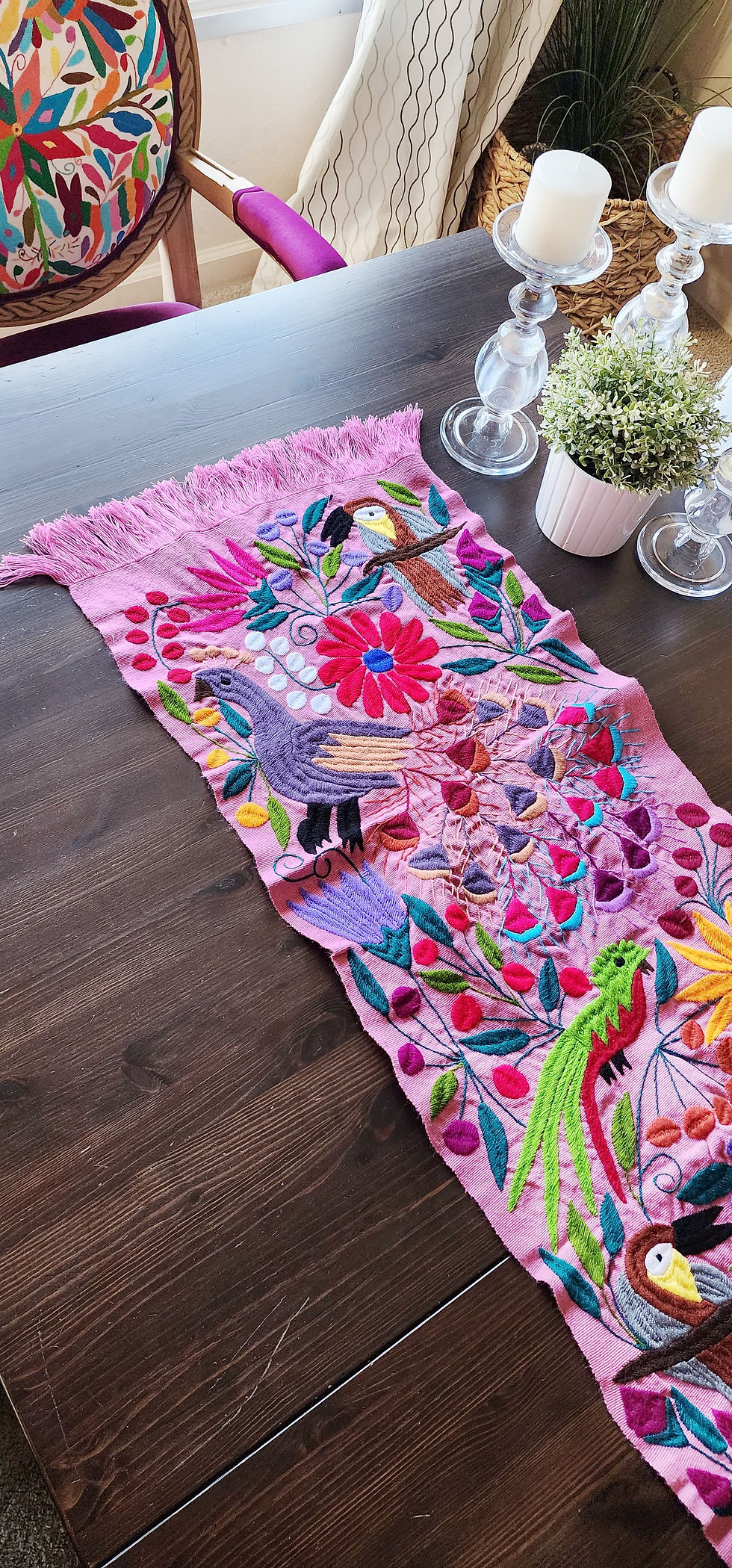 Tab le runner with Flowers machine embroidered from Guatemala.